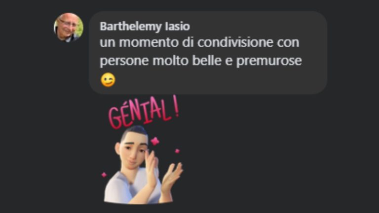 Avis Facebook : "Un momento di condivisione con persone molto belle e premurose" (Traduction : "un moment de partage avec des personnes très belles et attentionnées") - Barthelemy I.
